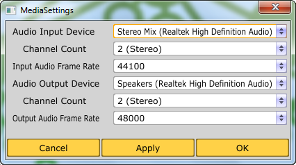 selected settings and dismisses the Audio Configuration Dialog.